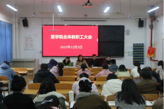 12月3日下午,医学院全体教职工在公共教学楼南楼105教室召开中期工作会议。会议由医学院党总支书记张儒主持。